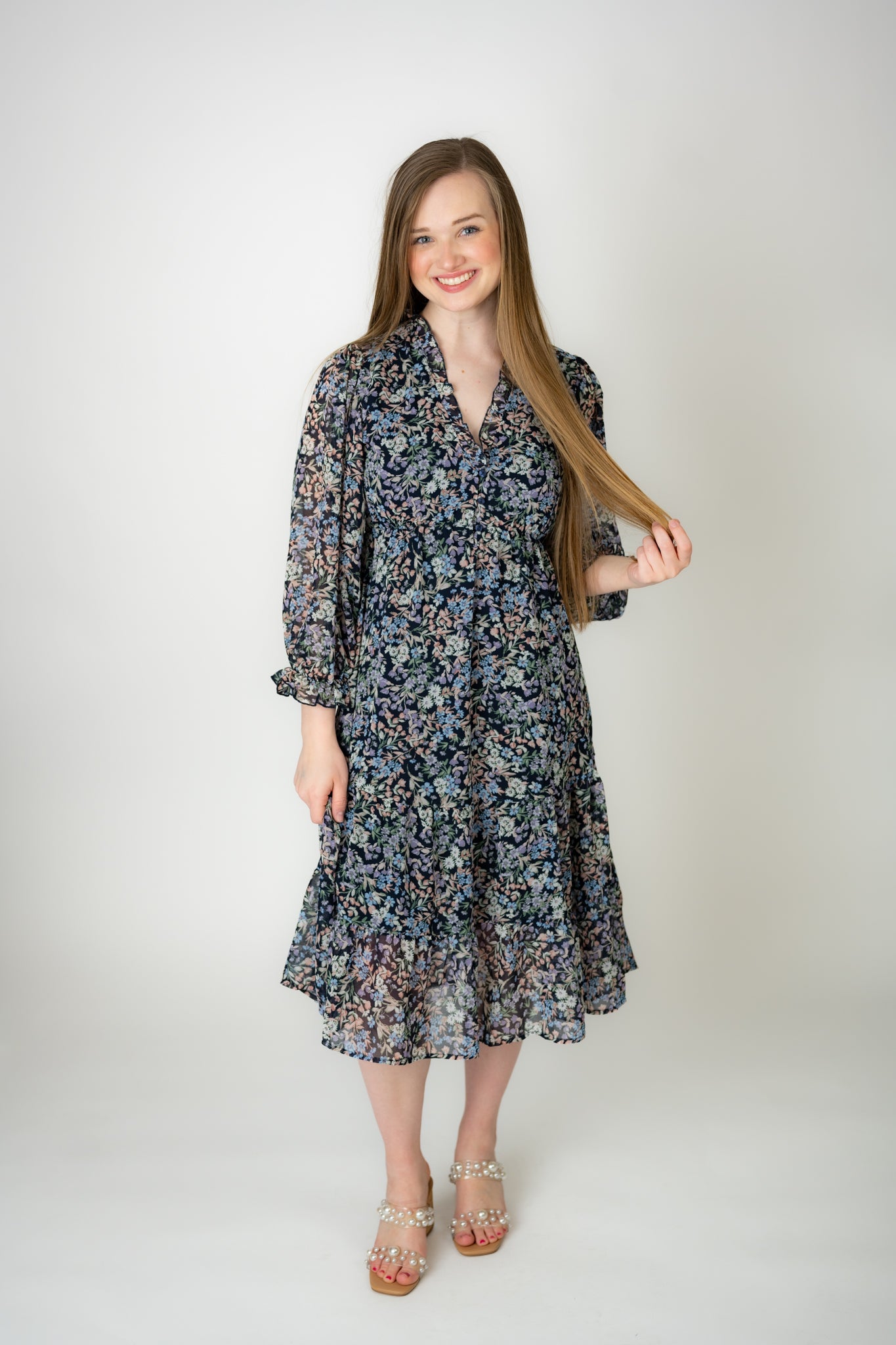 Painterly Ditsy Chiffon Midi Dress