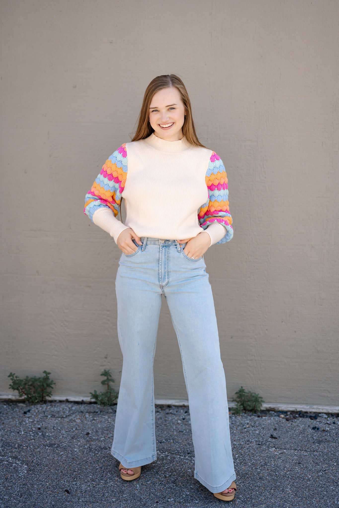 Rib Knit Pattern Sleeve Sweater