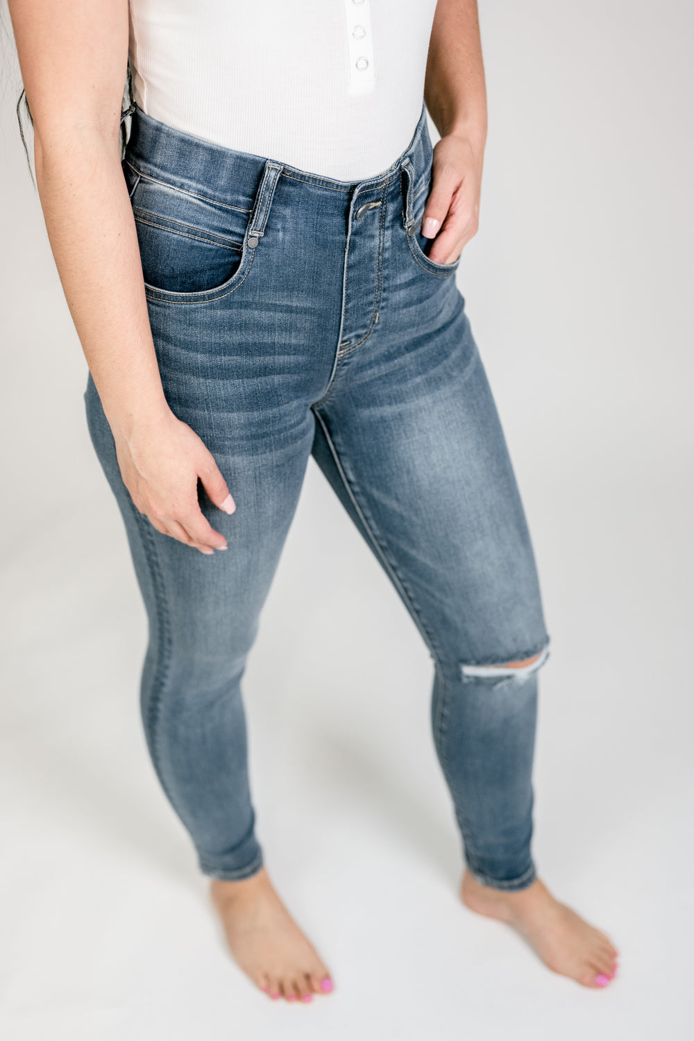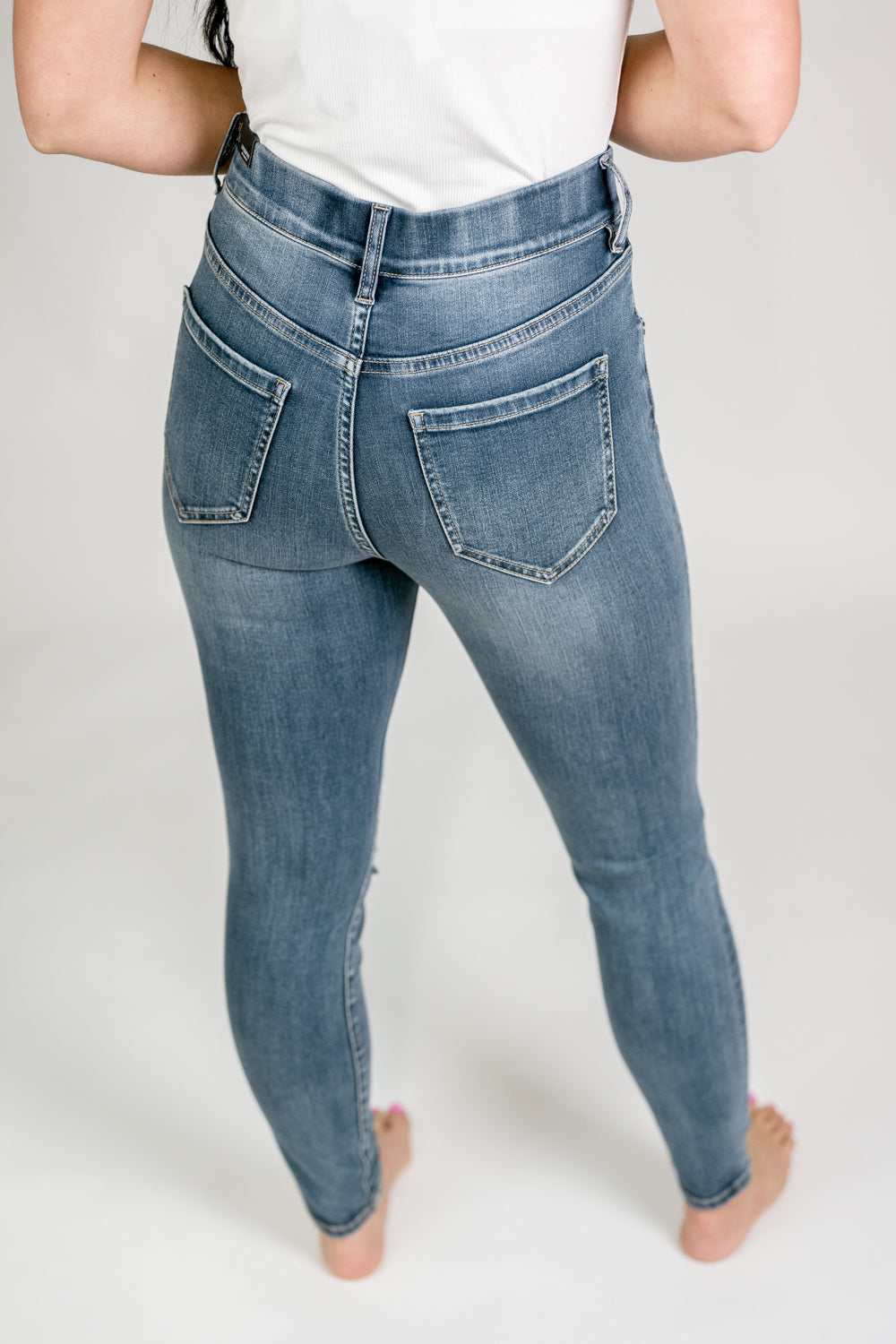 Liverpool Gia Glider in Leigh. 28" inseam with pull-on waist. Super stretchy with some distressing at one knee. Fit true to size.