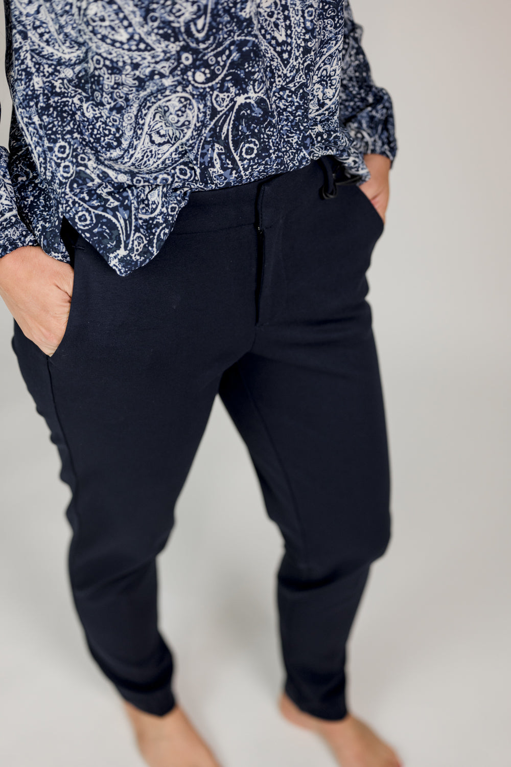 - Set-in waistband with belt loops