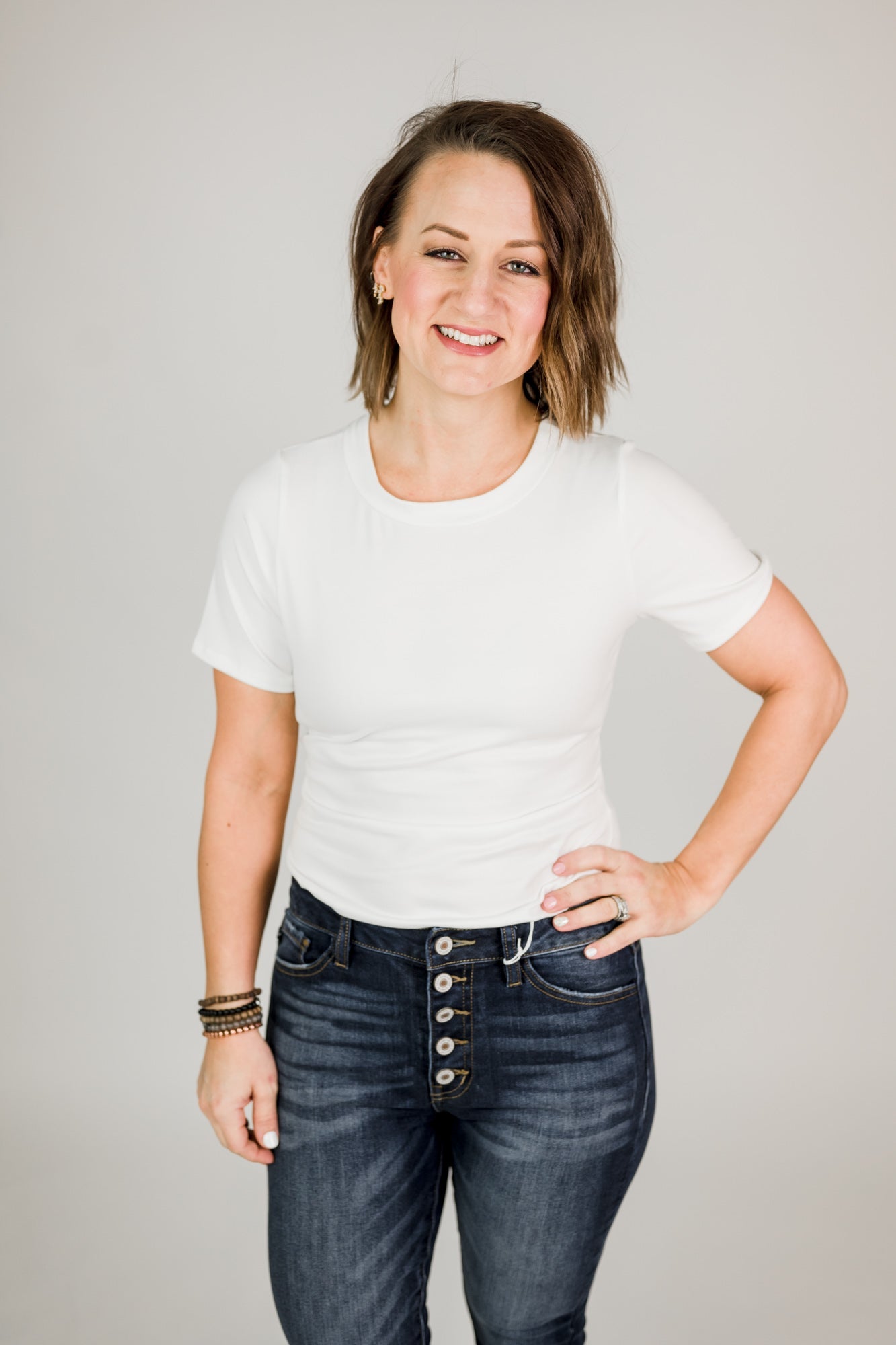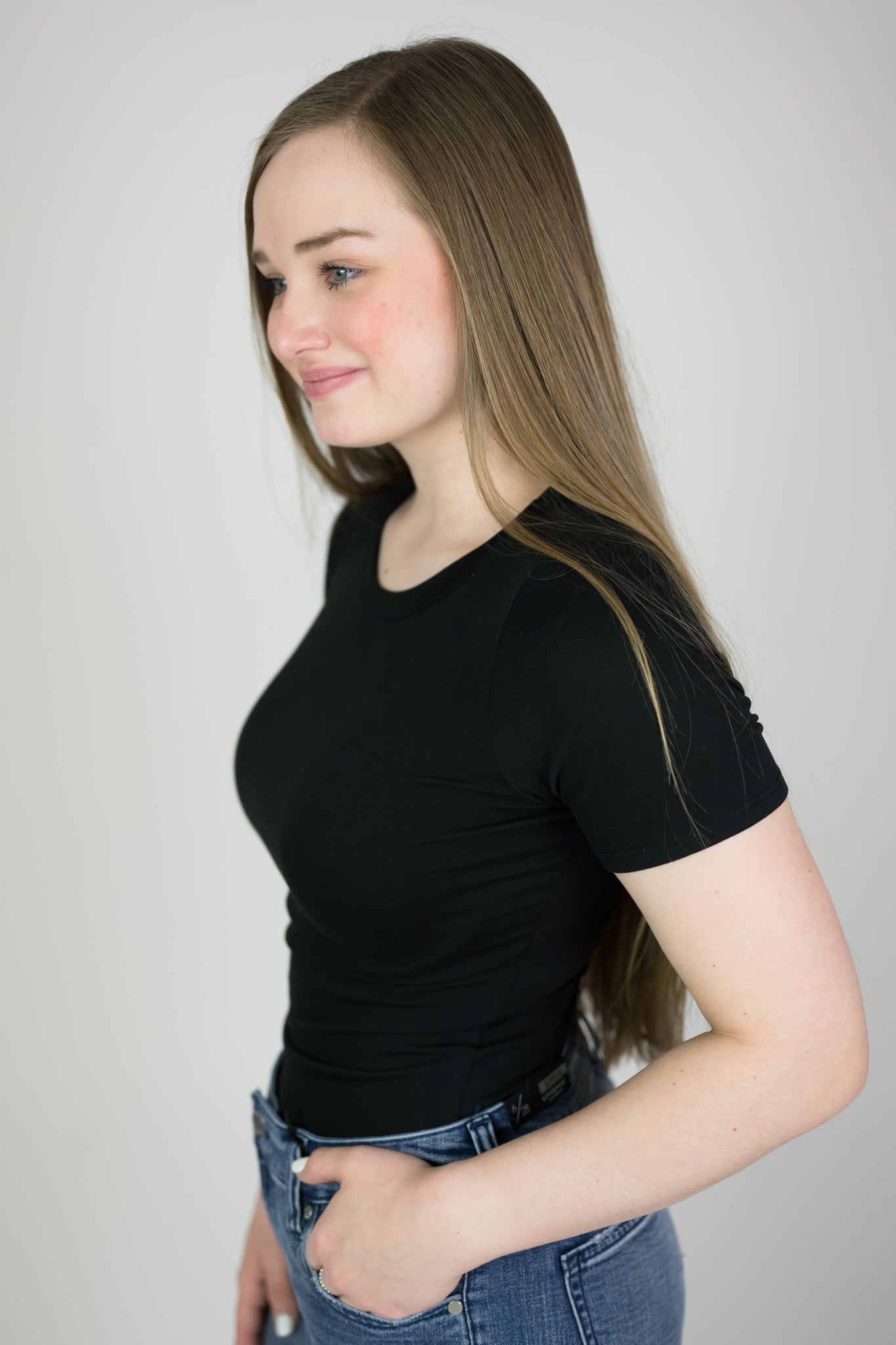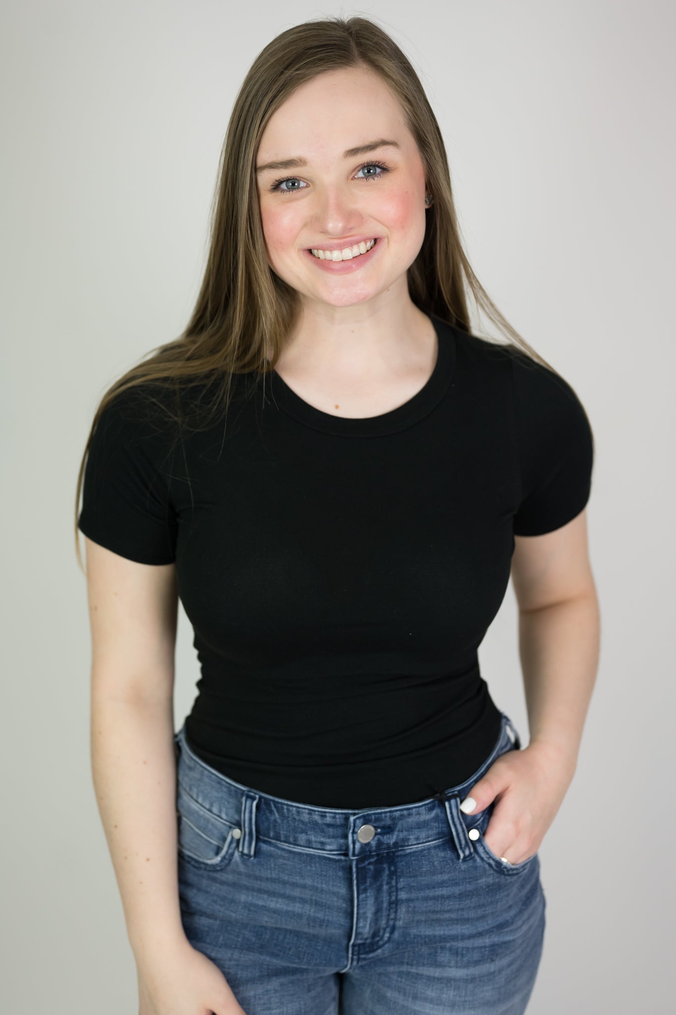 Solid crewneck bodysuit. Super soft and stretchy. Full bottom with snap closure. We always recommend sizing up in bodysuits.