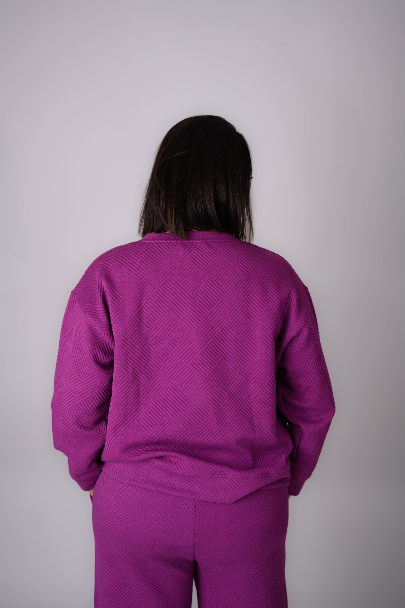 Textured sweatshirt in magenta. Gorgeous color with a loose, relaxed fit.