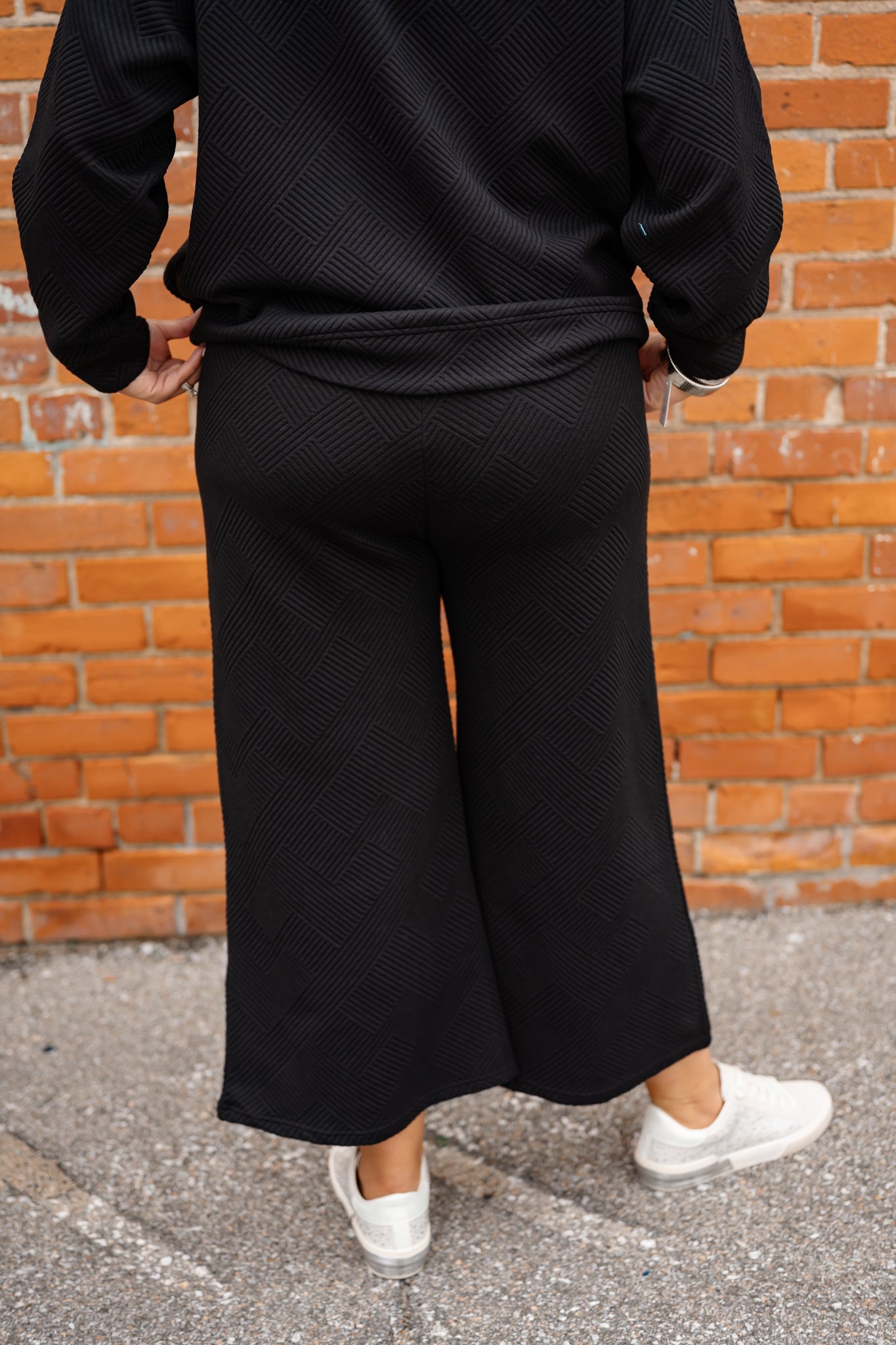 Textured Wide Leg Pants - Black