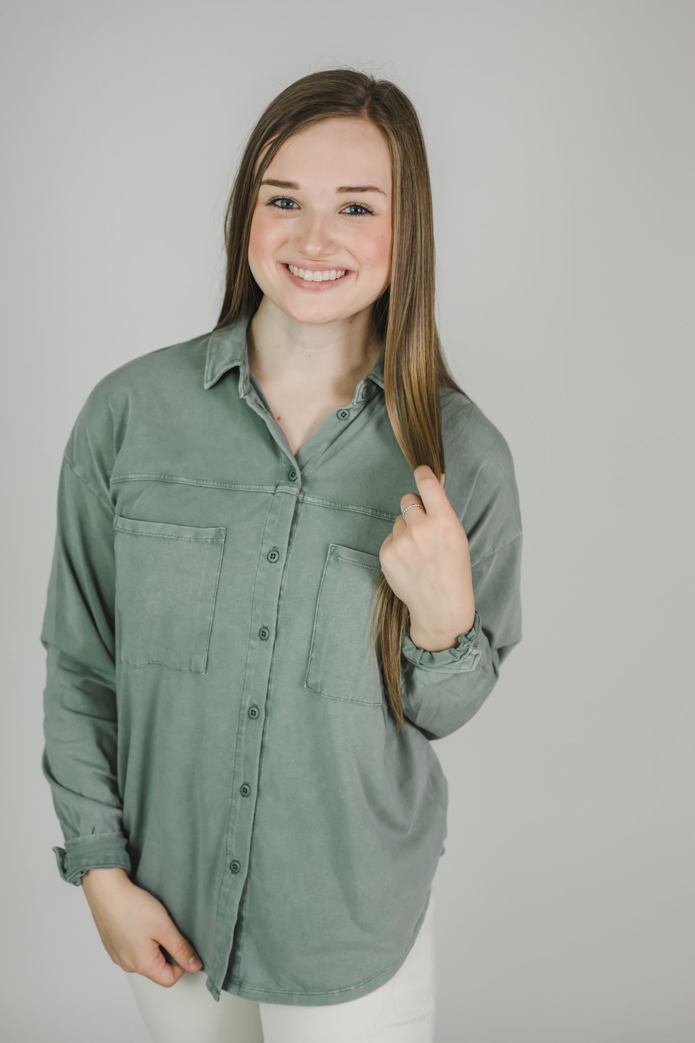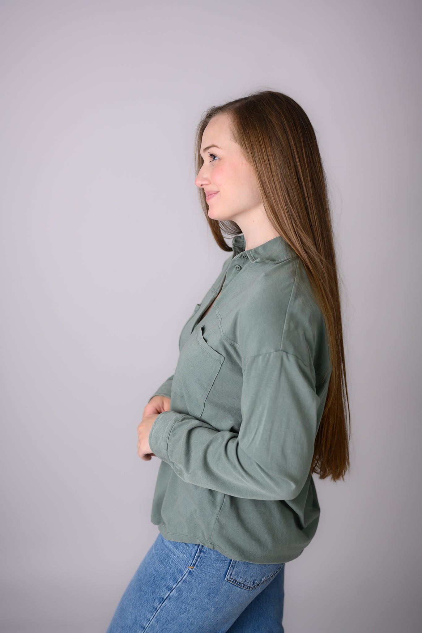 Relaxed but not oversized, this top is perfect as a throw-on top layer or chic button-up. The Niccola Button Up Top is that versatile layer you'll wanna have on-hand for all weather. Create that casual adventurous and comfy look by pairing this with our Kaci Jersey Pant, featuring a slightly relaxed fit.